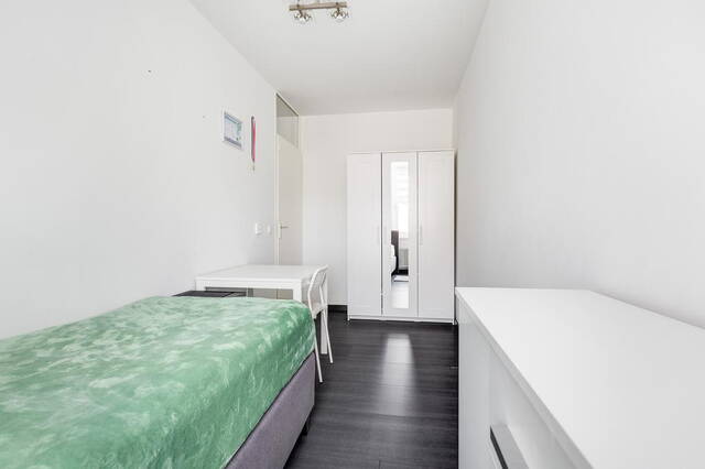 Aan de achterzijde van het appartement vindt u nog twee slaapkamers, waarvan één met toegang tot het tweede balkon. Beide kamers zijn ruim en licht, met glad afgewerkte muren en plafonds.