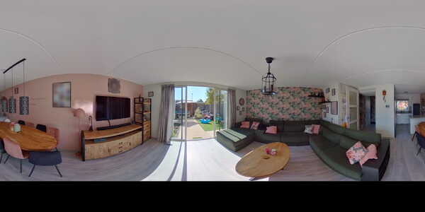 Loop je mee??Je komt binnen in een ruime hal met meterkast, trapopgang en een modern afgewerkte toiletruimte met hangend toilet en fonteintje. Via een stijlvolle glazen deur stap je de lichte woonkamer binnen. In de tuingerichte woonkamer van ca. 27 m² ligt een mooie laminaatvloer. Door de grote schuifpui komt er veel licht binnen in de ruimte, waar je genoeg plek hebt voor een gezellige zithoek en een grote eethoek.