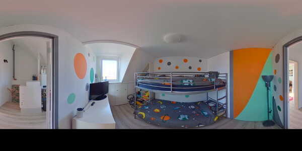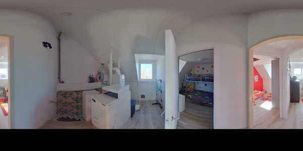 Op deze verdieping vinden we nog drie slaapkamers van respectievelijk 7, 7 en 6 m². Fijne lichte kamers, dankzij de grote ramen in de dakkapellen.