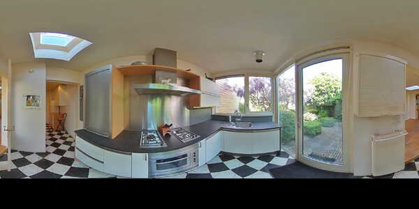 We lopen via de keuken terug het huis in. De semi-open keuken is in L-vorm geplaatst en voorzien van een uit 2 losse delen ingebouwd gaskookplaat en afzuigkap, een vaatwasmachine, oven en een anderhalve spoelbak met mengkraan. Onder de bovenkast is licht geplaatst om met goed licht te kunnen bereiden en koken. Ook in de keuken is een lichtkoepel geplaatst waardoor het een heerlijk lichte ruimte is. De grote ramen en puien dragen daar ook aan bij. In de bijkeuken is de koelkast geplaatst en hier bevindt zich de aansluiting voor de wasmachine. Daar is ook nog wat bergruimte voor de keukenspullen die je wat minder vaak gebruikt! Tevens hebben we hier toegang tot het toilet.