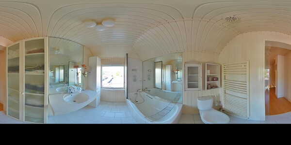 Aan de achterzijde kunnen we ook de badkamer in welke is voorzien van een ligbad, het tweede toilet en een wastafel met wastafelmeubel. Via de overloop heb je via de vlizotrap toegang tot de zolder waar de CV-ketel is opgesteld. Een fijne plek voor de kerstspullen, koffers etc.