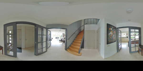 Entree, tochtportaal met meterkast, garderobe ruimte en toegang tot de garage. Middels glazen openslaande deuren heeft u toegang tot de hal. Bij binnenkomst wordt u meteen verrast door de prachtige lichtinval via de vide in de hal en de fraaie traphal die direct de toon zet voor de rest van de woning. Verder heeft de hal een ruime trapkast met veel opslagruimte en een fraai afgewerkte toiletruimte voorzien van een hangend toilet en fonteintje met kast. De toiletruimte is geheel betegeld en afgewerkt met sfeerverlichting. Via de hal heeft u toegang middels openslaande deuren aan de achterzijde tot het woongedeelte en aan de voorzijde tot de keuken/het eetgedeelte.