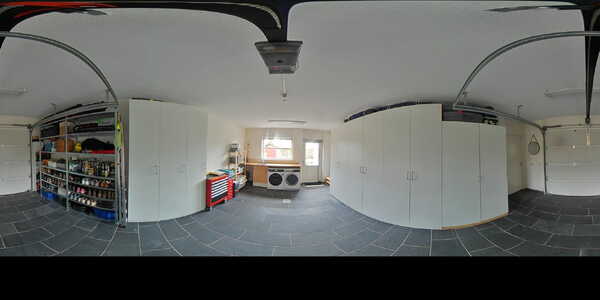 De inpandige garage (ca. 28 m2) is royaal bemeten en beschikt over een elektrisch bedienbare garagedeur met afstandsbediening, wasmachine- en drogeraansluiting, wasbak met koud/warm waterkraan en kastje. Verder is de garage afgewerkt met tegelvloer met vloerverwarming. Via een loopdeur met hor is de achtertuin bereikbaar.