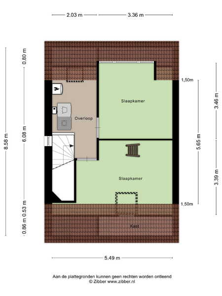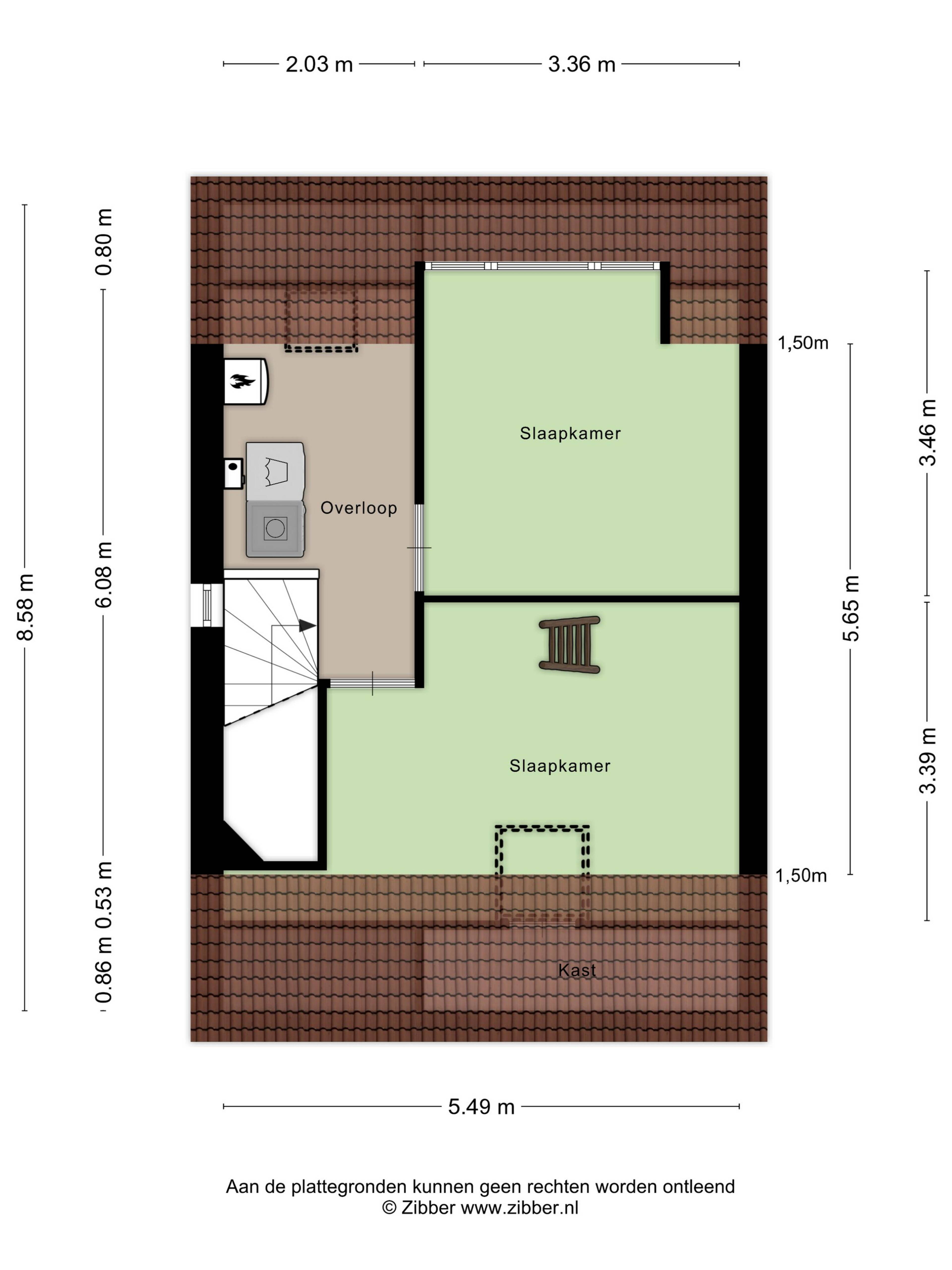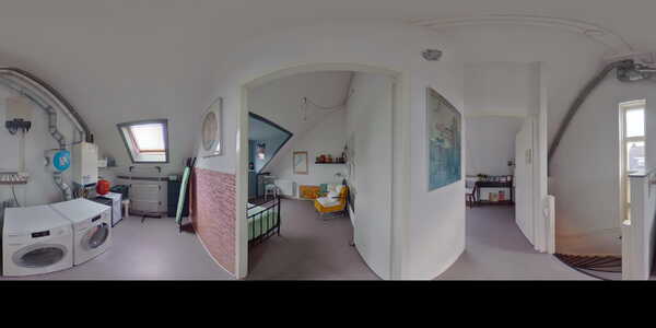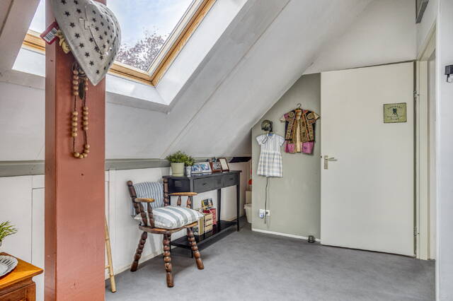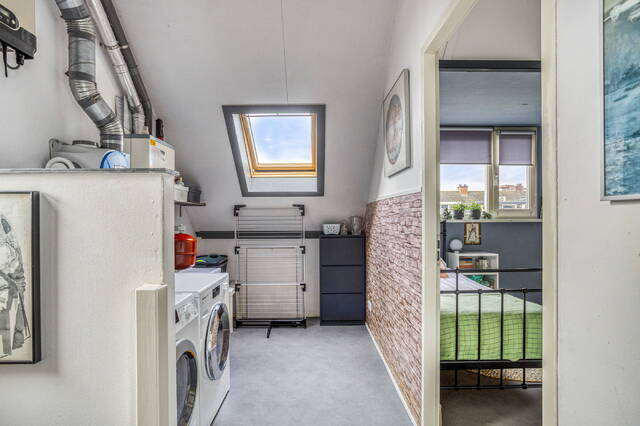 Ruime voorzolder met opstelplaatsen voor wasmachine, droger, cv-installatie, mechanische ventilatie en de omvormer voor de zonnepanelen. Er zijn twee volwaardige slaapkamers, één met dakkapel aan de achterzijde en één met dakraam aan de voorzijde. Beide kamers bieden volop licht en bergruimte achter knieschotten.