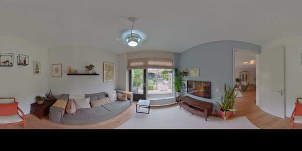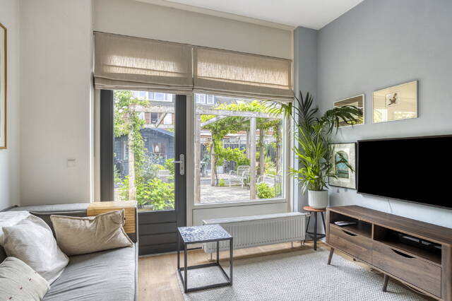 Via de nette entree met toilet, trap en handige trapkast kom je in de ruime, lichte woonkamer met eikenhouten vloer en openslaande deuren naar de tuin. De woning is aan de achterzijde uitgebouwd met een sfeervolle tuinkamer – perfect als werkplek, speelruimte of extra zithoek – met ook hier directe toegang tot buiten.