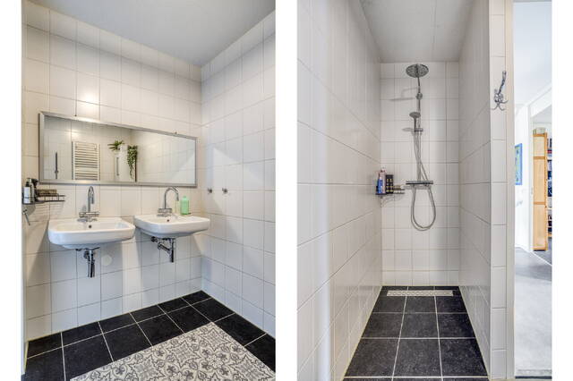 Drie comfortabele slaapkamers, waaronder een royale ouderslaapkamer aan de achterzijde. De grote badkamer is voorzien van een ruime inloopdouche met regendouche, dubbele wastafel en designradiator. Het toilet is separaat en uitgevoerd met een fonteintje.