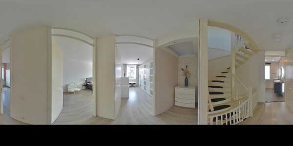 Ruime overloop met toegang tot alle vertrekken en trap naar de tweede verdieping.