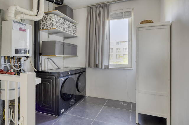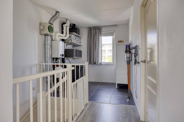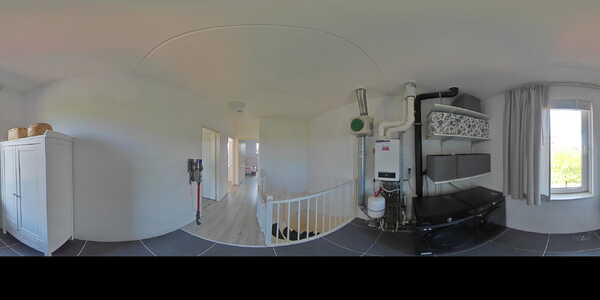 Overloop met stelplaats voor de HR C.V. combiketel (Nefit 2016), mechanische ventilatie en wasmachine- en drogeraansluiting.