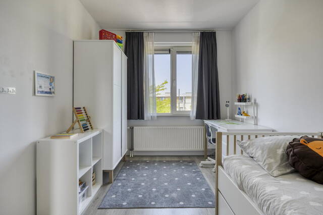 Slaapkamer 4 (ca. 11 m2) is gelegen aan de voorzijde van de woning en is voorzien van handmatig bedienbaar rolluik en hor.