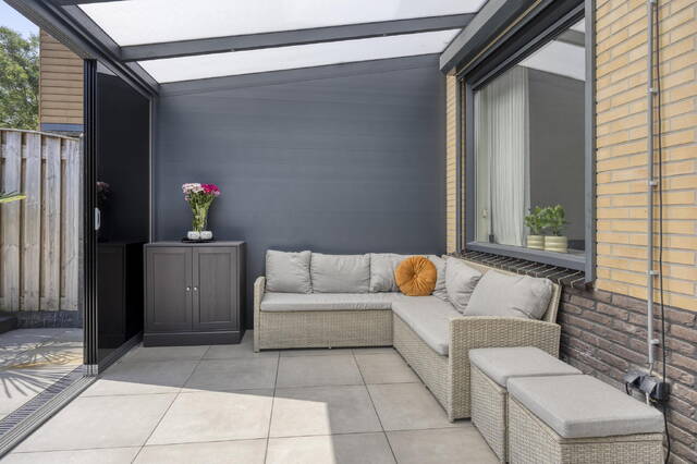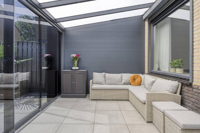 - Gezellige overkapping met o.a. 5 glazen schuifdeuren;