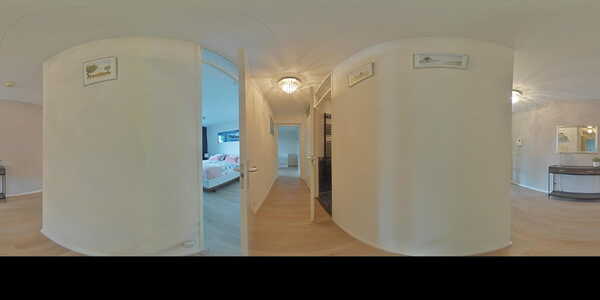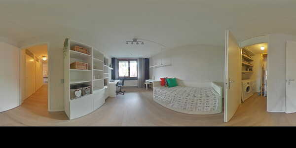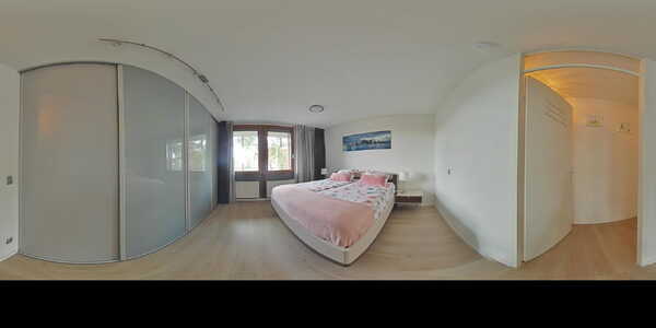 Slaapkamer 1 (ca. 15 m2) is gelegen aan de achterzijde van de woning en is voorzien van een 4-deuren schuifkastenwand en een lichte laminaatvloer.