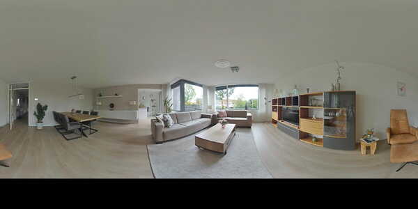 Lichte woonkamer (ca. 44 m2) gelegen aan de voorzijde van het complex en voorzien van een lichte laminaatvloer. Door de grote raampartijen biedt de woonkamer een aangename natuurlijke lichtinval. De woonkamer is verder voorzien van elektrisch screen.