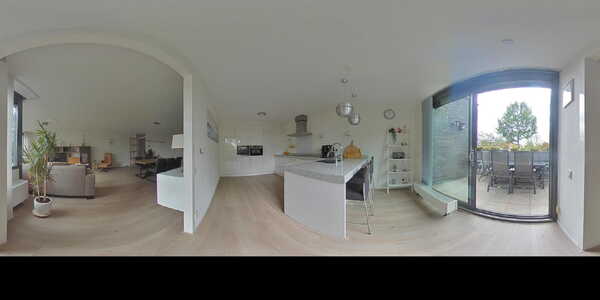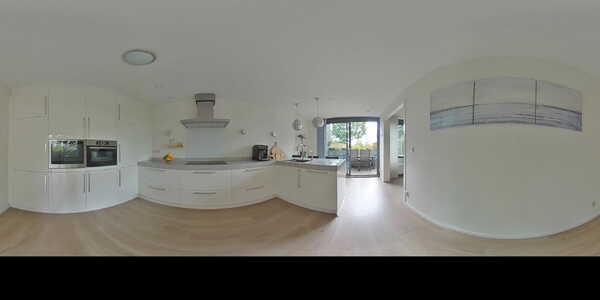 De moderne woonkeuken (ca. 18 m2) is uitgevoerd in een U-opstelling en is voorzien van hoogwaardige inbouwapparatuur zoals een grote koelkast, drie laden vrieskast, inductie kookplaat, RVS afzuigkap, een combi ovenmagnetron en een vaatwasmachine. Tevens is de keuken voorzien van een enkele spoelbak met een handige Quooker kraan, veel kasten en lades. Het geheel is uitgevoerd in hoogglans wit en afgewerkt met soft close systeem, een granieten aanrechtblad en een lichte laminaatvloer. Middels een schuifpui heeft u toegang tot het zonnige balkon.