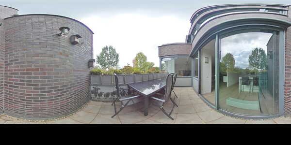 Balkon (ca. 10 m2) gelegen op het zuiden en voorzien van een elektrisch zonnescherm. U heeft hier voldoende ruimte voor een tafel en stoelen om de hele dag van de zon te kunnen genieten.