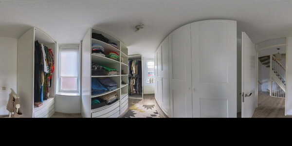 De tweede en derde slaapkamer liggen aan de achterzijde; één daarvan is momenteel in gebruik als kleed-/kastenkamer.