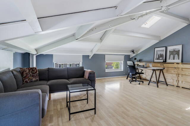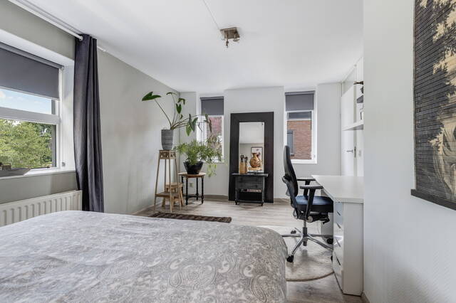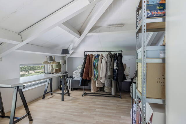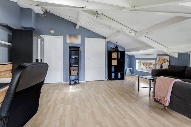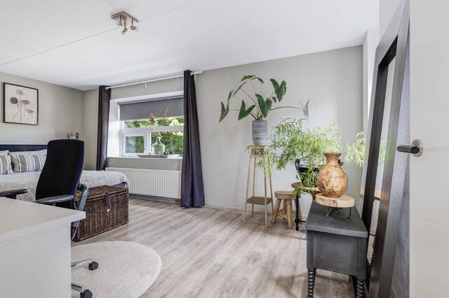 De tweede verdieping is bereikbaar via een vaste trap en biedt een sfeervolle zolderkamer met fraaie kapconstructie en speelse raampartijen. Deze ruimte is afgewerkt met laminaat en zeer geschikt als extra slaapkamer.