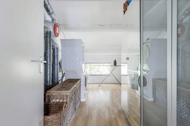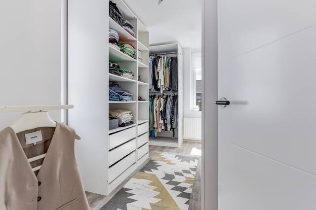 Daarnaast is er een aparte technische ruimte met opstelplaats voor de wasmachine en droger, cv-ketel en mechanische ventilatie-unit. Ook deze ruimte is voldoende groot om nog een werk- of logeerplek te creëren.
