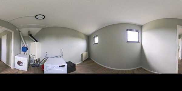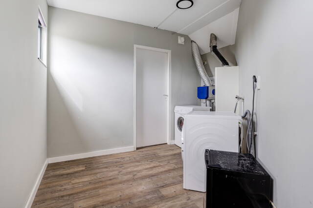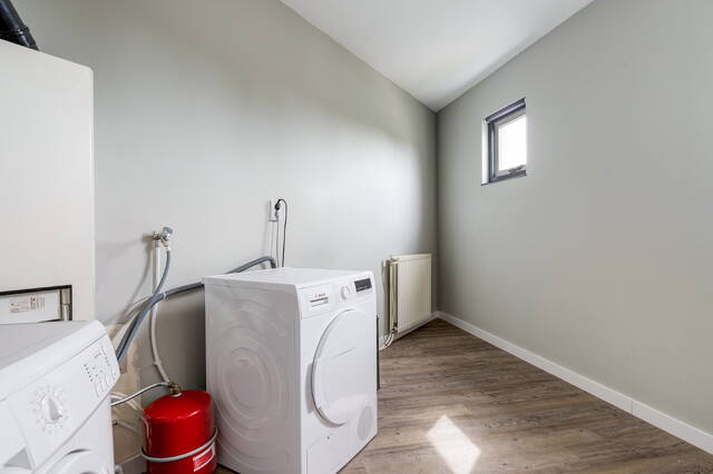 - Afgesloten wasruimte met cv-opstelling en aansluiting voor wasmachine/droger