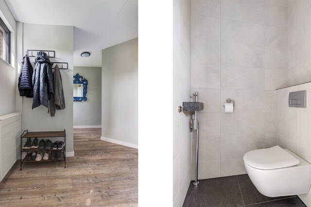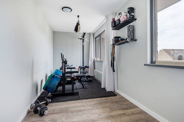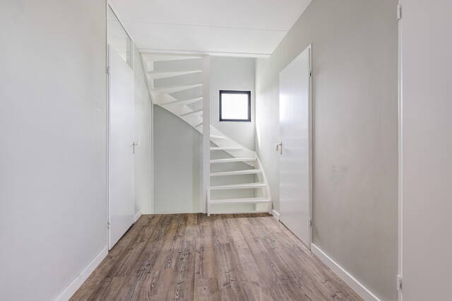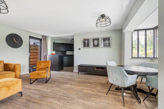 - Gehele woning strak afgewerkt met pvc- en laminaatvloeren en glad stucwerk