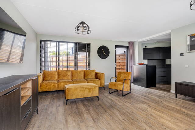 - Lichte woonkamer met toegang tot zowel voor- als achtertuin