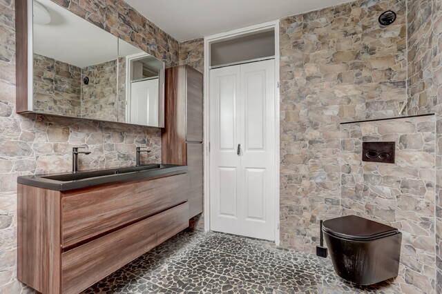 Op de eerste verdieping zijn drie slaapkamers: twee aan de achterzijde en één aan de voorzijde. Ook vind je hier de moderne badkamer, voorzien van een douche, tweede toilet en een dubbele wastafel met meubel en aparte badkamerkast. Dankzij het dakraam is de ruimte heerlijk licht en de designradiator zorgt voor warme, droge handdoeken.