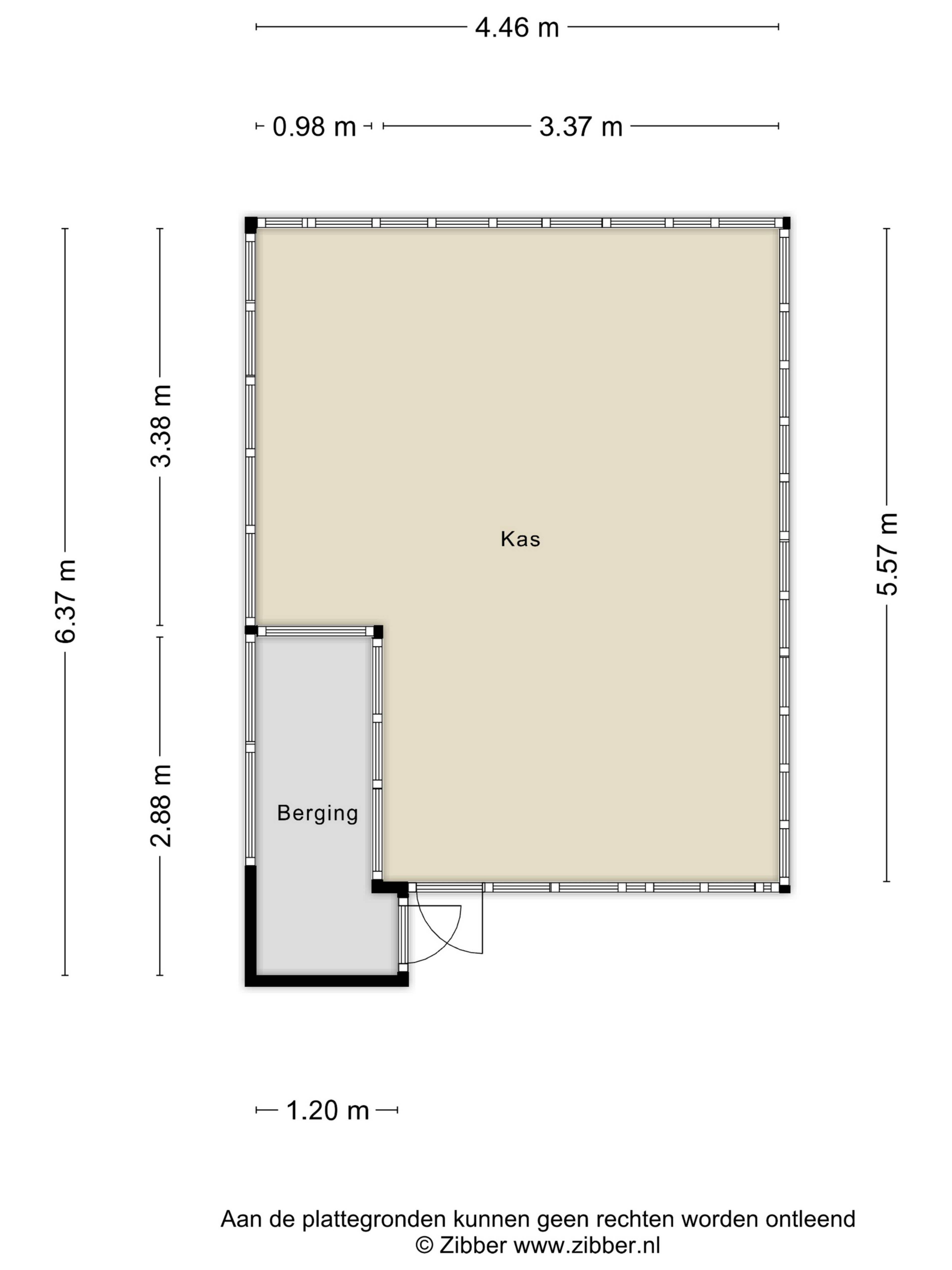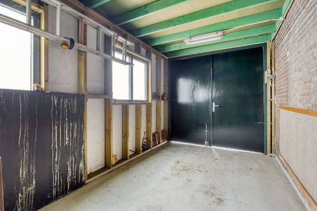 Aangebouwde garage (ca. 14 m2) voorzien van openslaande deuren, elektra en stopcontacten.