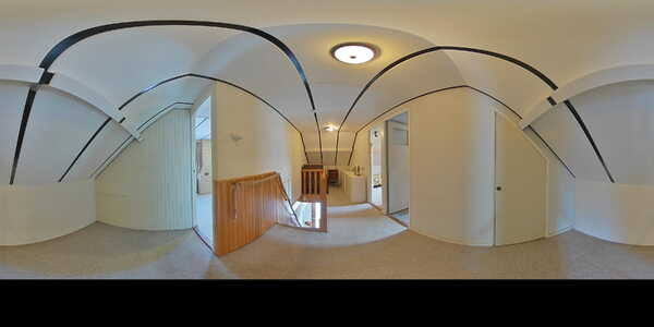Ruime overloop met een bergkast en toegang tot alle vertrekken. De overloop is afgewerkt met vloerbedekking.