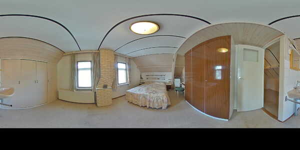 Slaapkamer 1 (ca. 14 m2) is gelegen aan de zijkant van de woning en is voorzien van een wastafel met koud/warm waterkraan en bergruimte achter het knieschot.