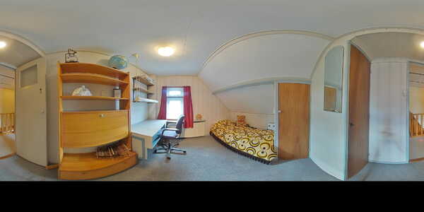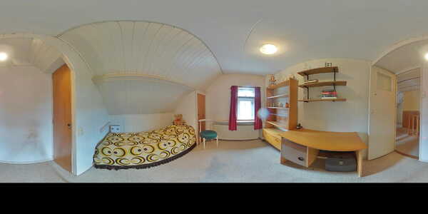 De slaapkamers op deze verdieping zijn afgewerkt met vloerbedekking, hor en behang.