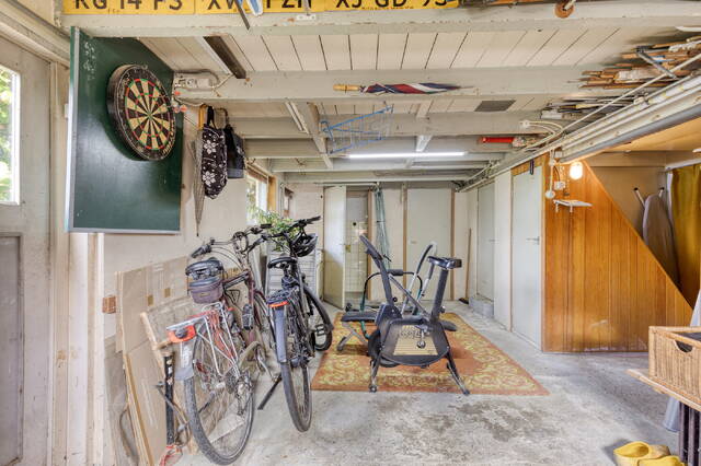 De achtertuin is heerlijk gelegen op het westen en biedt voldoende grond om een eigen moestuin aan te leggen, waar je groenten, kruiden, fruitbomen en andere planten kunt laten groeien. Dankzij de kas kunt u ook in de winter genieten van verse groenten en kruiden, zodat uw tuin het hele jaar door productief blijft. Verder biedt de achtertuin een overkapping met een gezellige haard, twee achteroms, een vaste kast voor de tuingereedschappen en tuinspullen, een vijver en verschillende plekjes om te zitten en van de zon te genieten. Onder de garage staat nog een extra ruime berging.