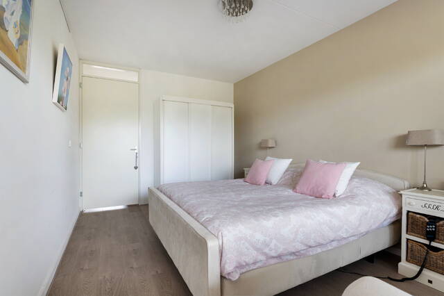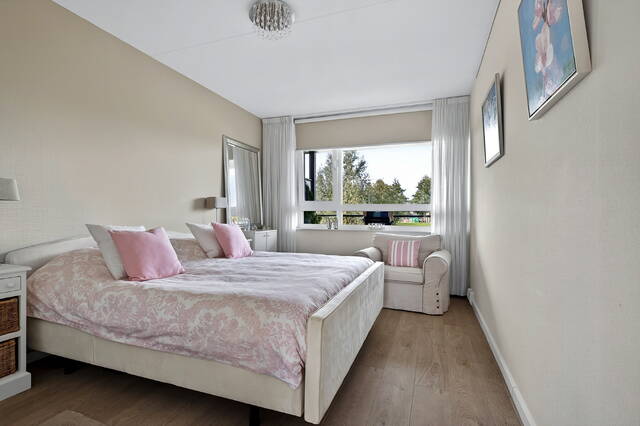 Het appartement beschikt over drie slaapkamers van verschillende formaten. De hoofdslaapkamer van circa zestien vierkante meter biedt meer dan voldoende ruimte voor een groot bed en een ruime garderobekast. De tweede slaapkamer van circa elf vierkante meter is perfect in te richten als kinderkamer of studeerkamer, terwijl de derde kamer van circa negen vierkante meter zich uitstekend leent als logeerkamer of thuiswerkplek. Zo biedt dit appartement voor ieder gezinslid of iedere woonwens een passende ruimte. Nagenoeg de gehele woning is voorzien van een duurzame laminaatvloer.