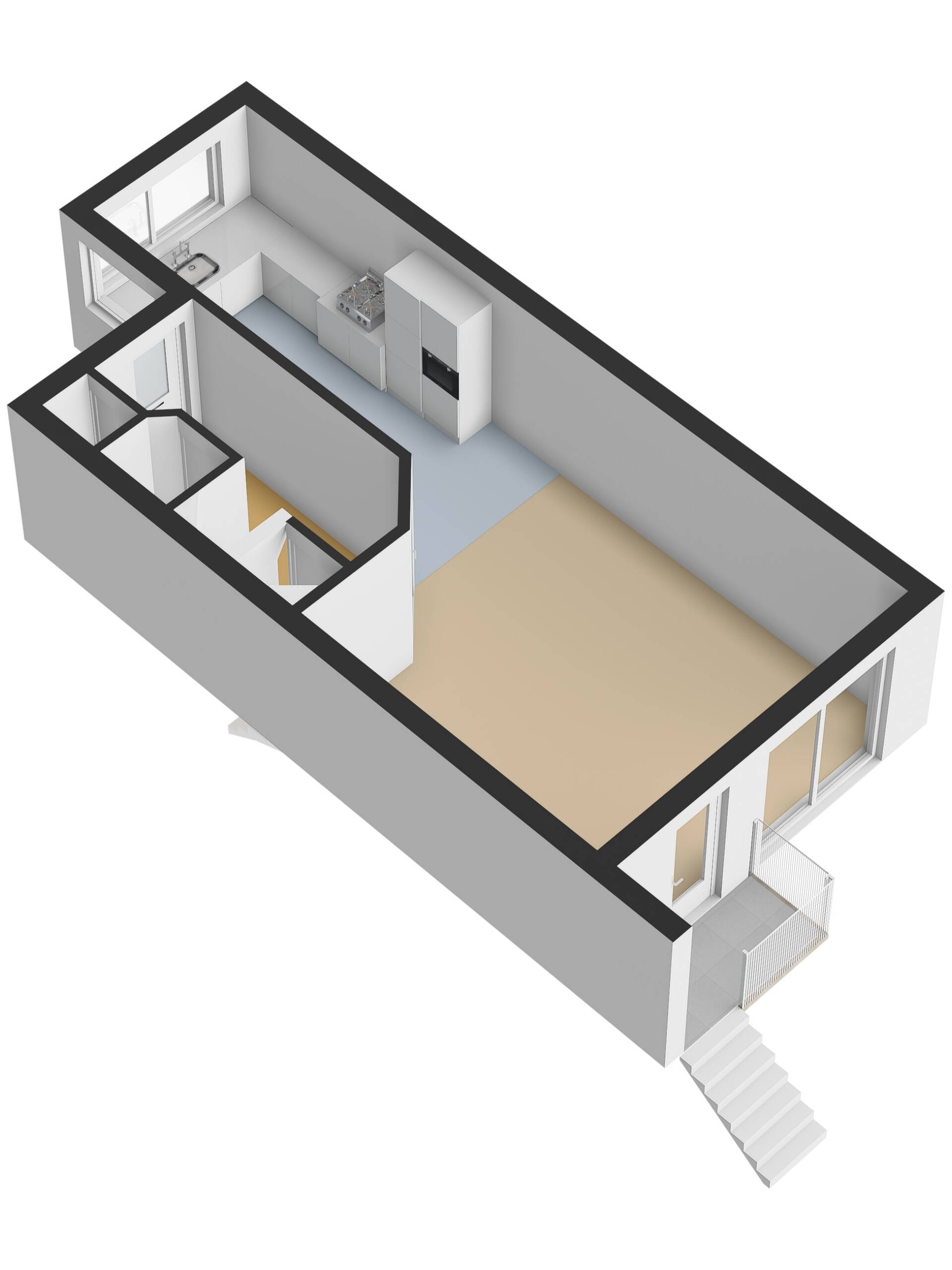 Via de trap aan de voorzijde bereik je de entree op de verhoogde begane grond. De hal biedt toegang tot het toilet, de meterkast en de trap naar boven en naar het souterrain. Vanuit de hal stap je de ruime woonkamer (ca. 26 m²) binnen, die dankzij de grote ramen veel lichtinval heeft. De woonkamer heeft een sfeervolle openhaard met een fraaie kalkzandstenen schouw. Aan de achterzijde bevindt zich het balkon, met de trap naar de achtertuin