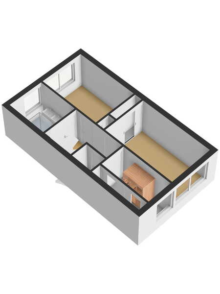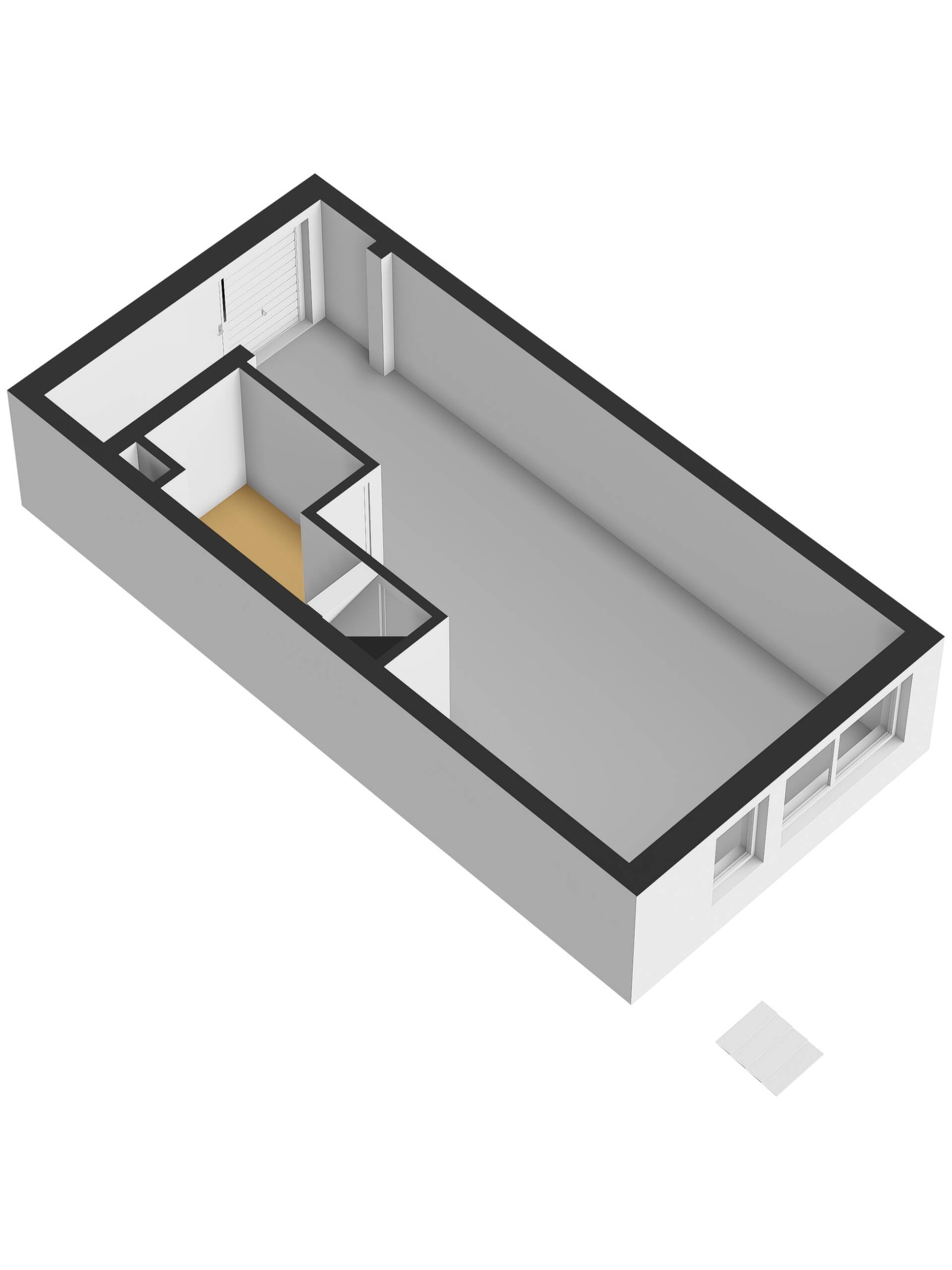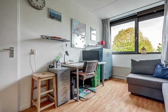 De tweede verdieping is bereikbaar via een vaste trap en biedt een ruime slaapkamer