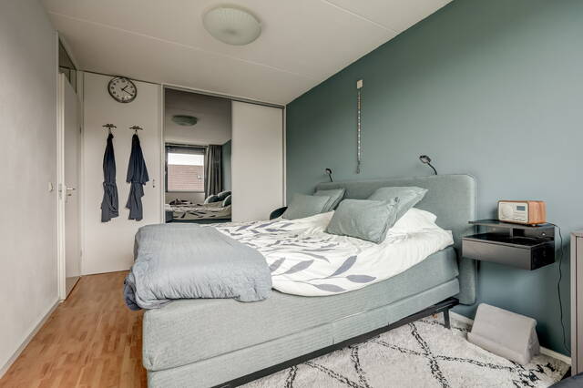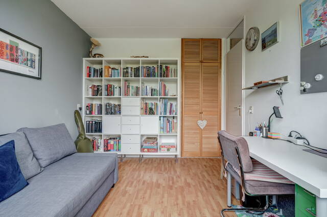 Op de eerste verdieping bevinden zich drie ruime slaapkamers en een badkamer. De slaapkamer (ca. 13 m²) aan de achterzijde beschikt over een vaste schuifkastenwand. De andere slaapkamer (ca. 7 m²) aan de achterzijde heeft een heerlijke sauna en extra vaste kastruimte. De slaapkamer (ca. 12 m²) aan de voorzijde is ook voorzien van een vaste inbouwkast. De slaapkamers op de eerste verdieping zijn afgewerkt met een laminaatvloer.