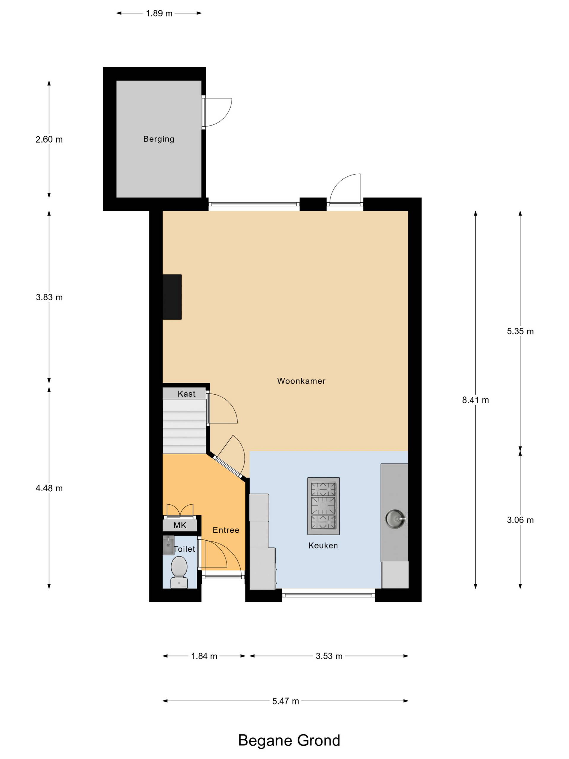 Via de voortuin stap je achter de voordeur binnen in de hal met meterkast en toiletruimte. Je hangt je jas op en loopt de doorzonwoonkamer met open keuken in. Wat een fijne ruimte! Lekker licht en met circa 40 m² ook nog eens heerlijk ruim. In de woonkamer is voldoende plek voor een grote zithoek én een gezellige eethoek. Onder de trap vind je de welbekende trapkast, waar je altijd verbazingwekkend veel in kwijt kunt.