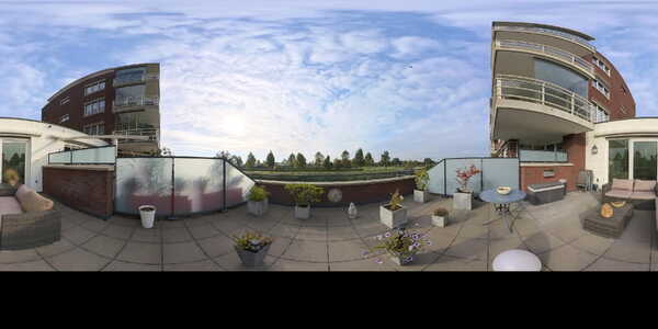 Het riante terras aan de achterzijde vormt het absolute hoogtepunt van deze woning: volledig betegeld, met een breed elektrisch bedienbaar zonnescherm en vrij uitzicht over de omgeving. Hier kunt u in alle rust genieten van de zon en het polderlandschap.