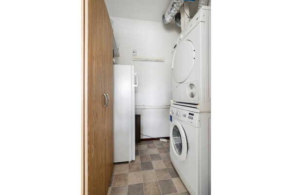 Aansluitend vindt u de bijkeuken, met ruimte voor de wasmachine en droger, de cv-opstelling en extra bergruimte, praktisch en netjes weggewerkt.