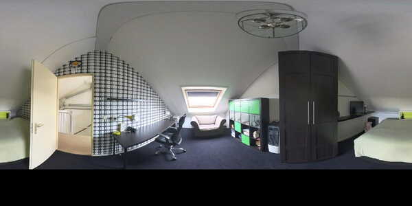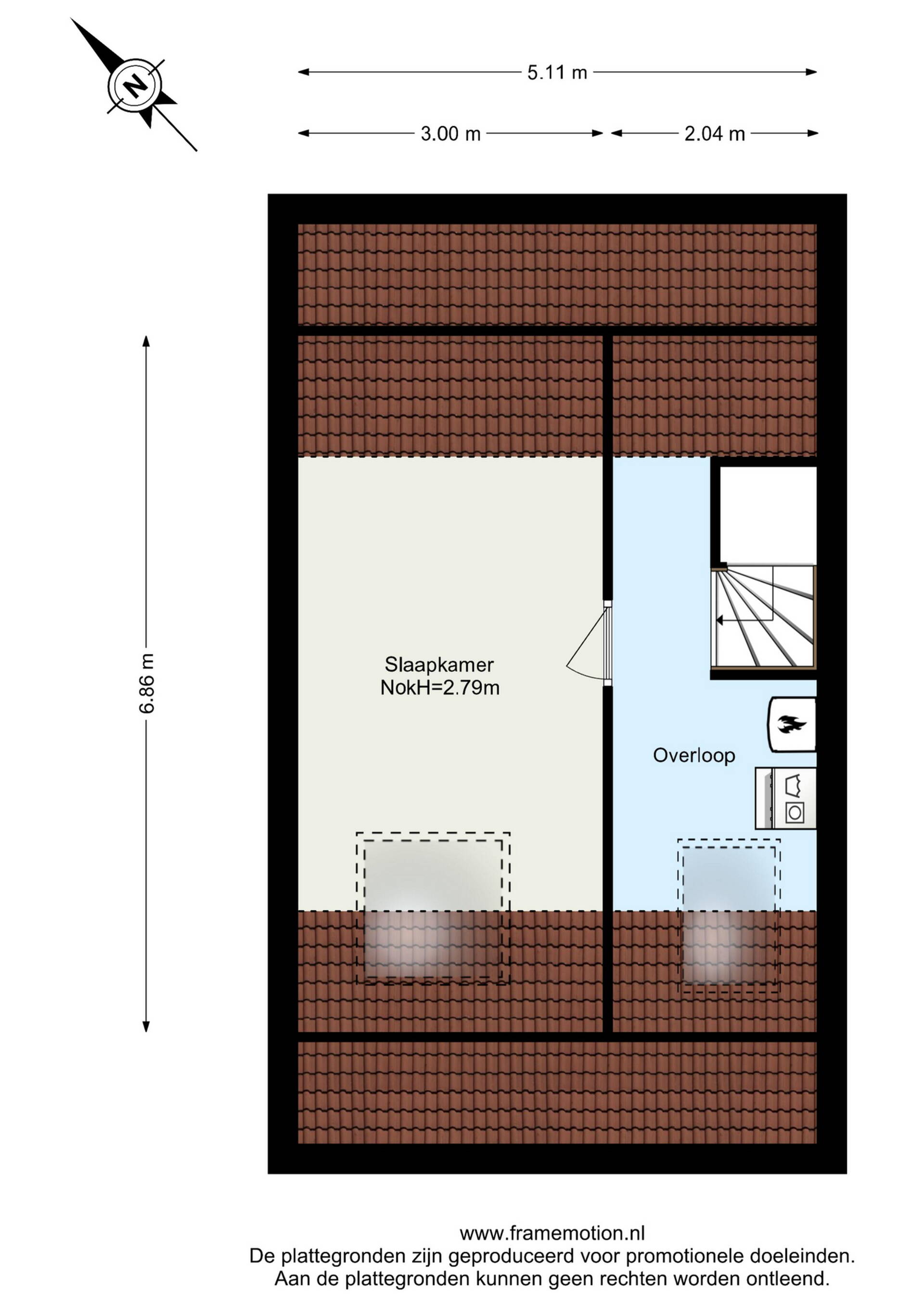 De tweede verdieping is bereikbaar via een vaste trap en biedt een ruime voorzolder met aansluitingen voor wasmachine en droger, bergruimte achter de knieschotten en de opstelplaats van de CV-combiketel.