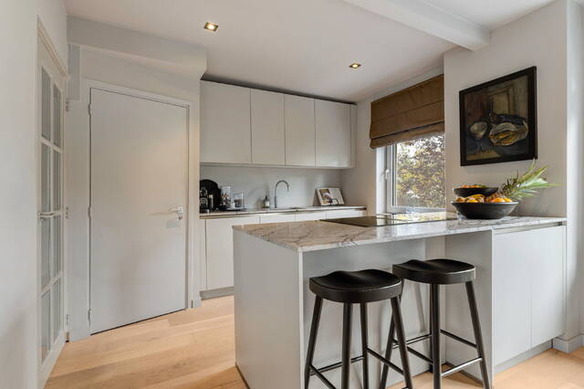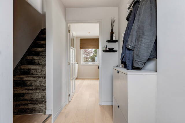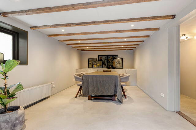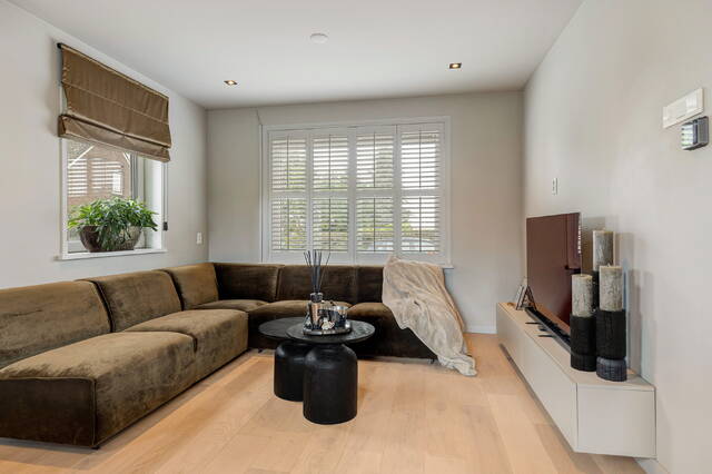 Op de bel-etage valt meteen het lichte, royale karakter van de woonkamer op. Ingebouwde spotverlichting en airconditioning zorgen voor een luxe en comfortabele sfeer, terwijl de shutters het geheel stijlvol afronden. De nieuwe open keuken is een absolute eyecatcher: een inductiekookplaat met geïntegreerde afzuiging, marmeren aanrechtblad, Quooker, vaatwasser, koelkast en combi-oven maken koken een waar plezier. De woonkamer en keuken zijn naadloos verbonden, waardoor een open, uitnodigende leefruimte ontstaat. De vloer is uitgevlakt en afgewerkt met warme eikenhouten vloerdelen. De vernieuwde en uitgebreide meterkast biedt optimale functionaliteit.