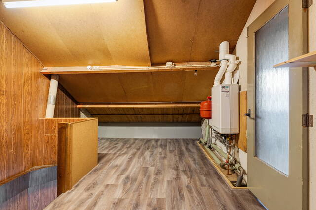 Via de vaste trap bereikt u de tweede verdieping met overloop, CV-opstelling en bergruimte achter de knieschotten.