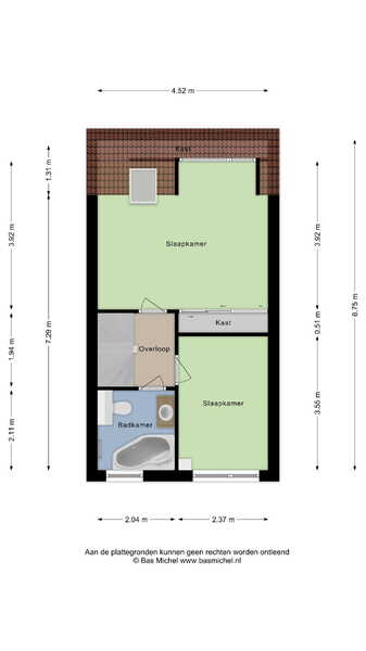 Slaapkamer 2 (ca. 8 m2) is gelegen aan de voorzijde van de woning en is voorzien van een elektrisch bedienbaar rolluik.
