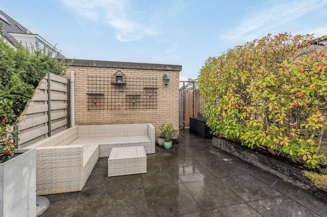 De voortuin is netjes aangelegd en beschikt over een handige buitenkraan. Het is echt leuk om een perenboom aan de voorzijde te hebben; die zorgt voor een gezellige en natuurlijke uitstraling. In de lente bloeit hij prachtig, en in de herfst plukt u uw eigen peren!