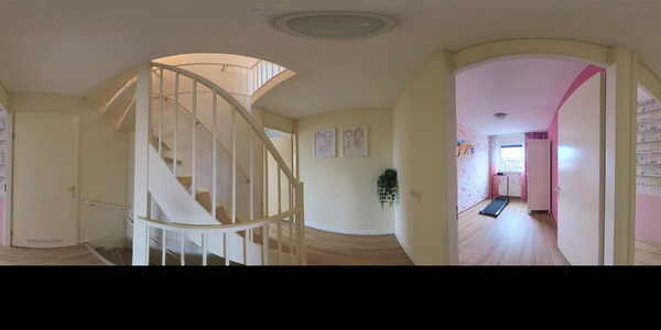 Op de overloop bevindt zich een afgesloten technische ruimte met opstelplaats voor de wasmachine en droger, de CV-installatie, een extra douchecabine met massagejets en een wastafelmeubel – ideaal voor een groot gezin.