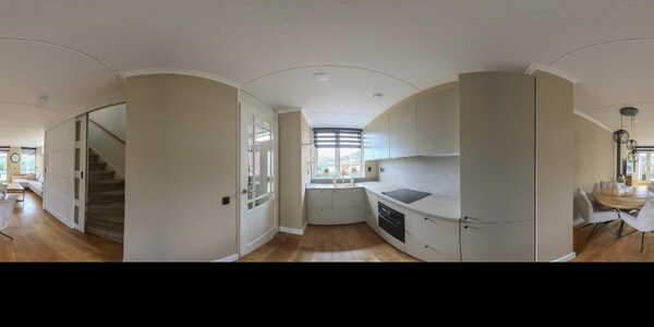 De open keuken is gesitueerd aan de voorzijde en is in 2025 volledig vernieuwd. Uitgevoerd in een moderne beige tint en geplaatst in een praktische hoekopstelling. De keuken is uitgerust met een combi-oven, een 4-pits inductiekookplaat met geïntegreerde afzuiging, een koel-vriescombinatie en veel lades voor optimaal opbergcomfort.