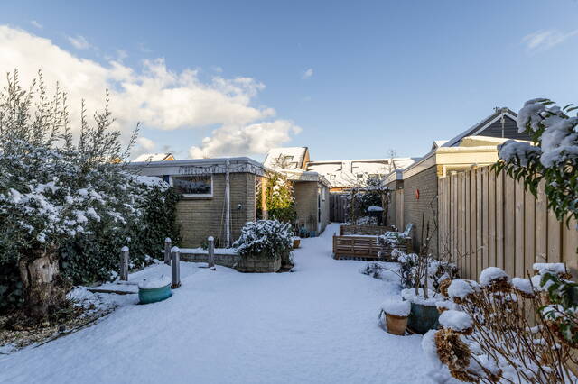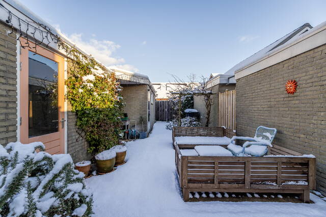 De achtertuin is sfeervol ingericht met echt gras, sierbestrating en sierbeplanting. Een elektrisch zonnescherm met sensor zorgt voor comfort op zonnige dagen. Vanuit de tuin bereikt u zowel de stenen berging als de stenen garage, die tevens bereikbaar is vanaf de achtergelegen parkeerplaats. De tuin ligt gunstig op het oosten, waardoor u volop ochtend- en vroege middagzon heeft.