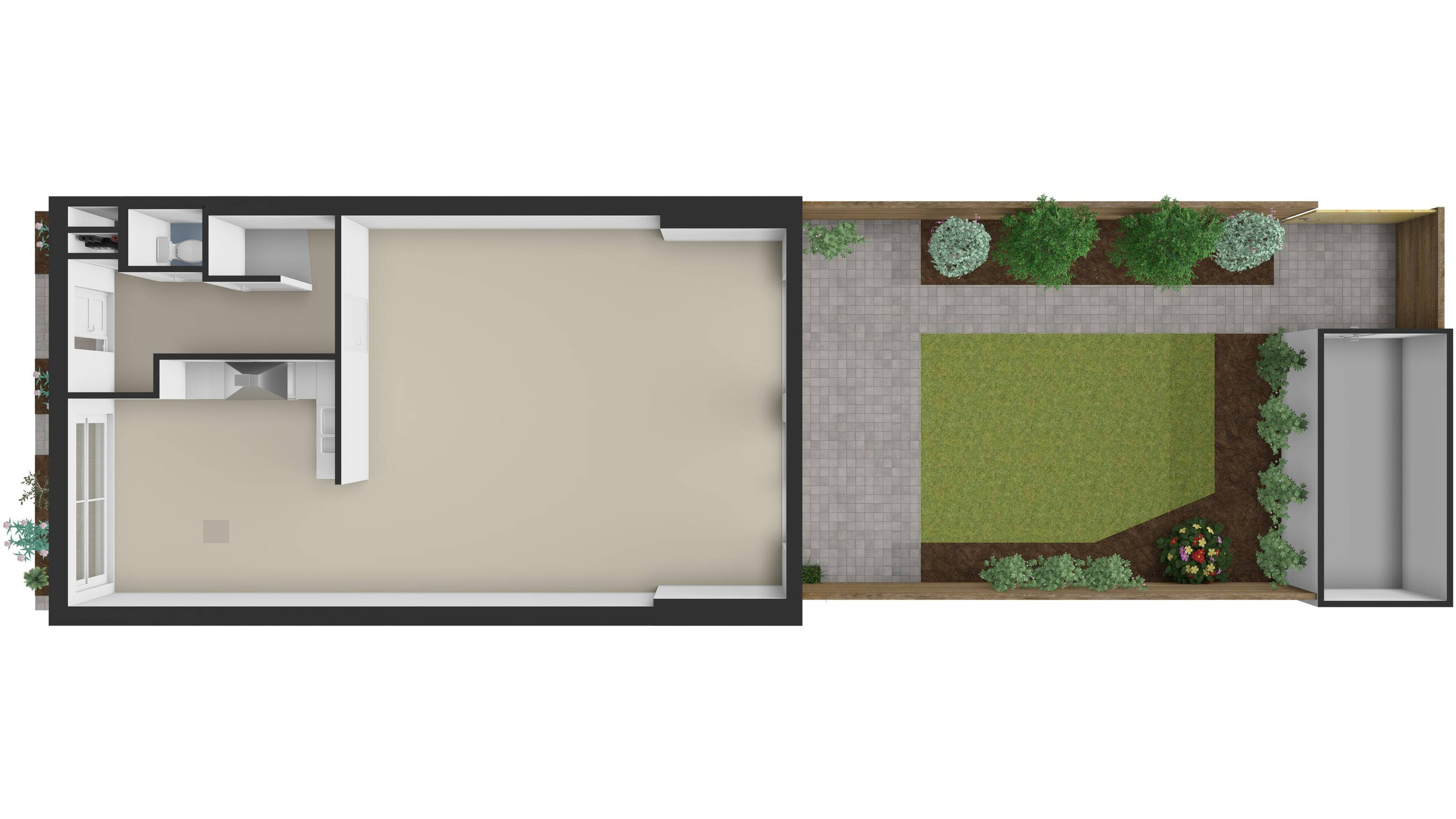 - Uitgebouwde tuingerichte woonkamer met vloerverwarming en een grote schuifpui;
