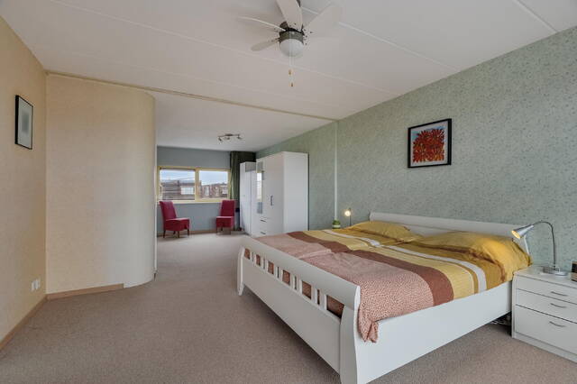 Slaapkamer 4 (ca. 29 m2) beschikt over elektrisch bedienbaar rolluik en een lichte vloerbedekking. Deze verdieping verrast met een zeer ruime slaapkamer die toegang biedt tot een extra kamer. Deze slaapkamer is uitermate geschikt als comfortabele ouderslaapkamer met inloopkast en/of badkamer, maar kan ook eenvoudig worden ingedeeld in twee volwaardige slaapkamers. Ideaal voor grotere gezinnen, werken aan huis of het creëren van extra hobby- of logeerruimte.