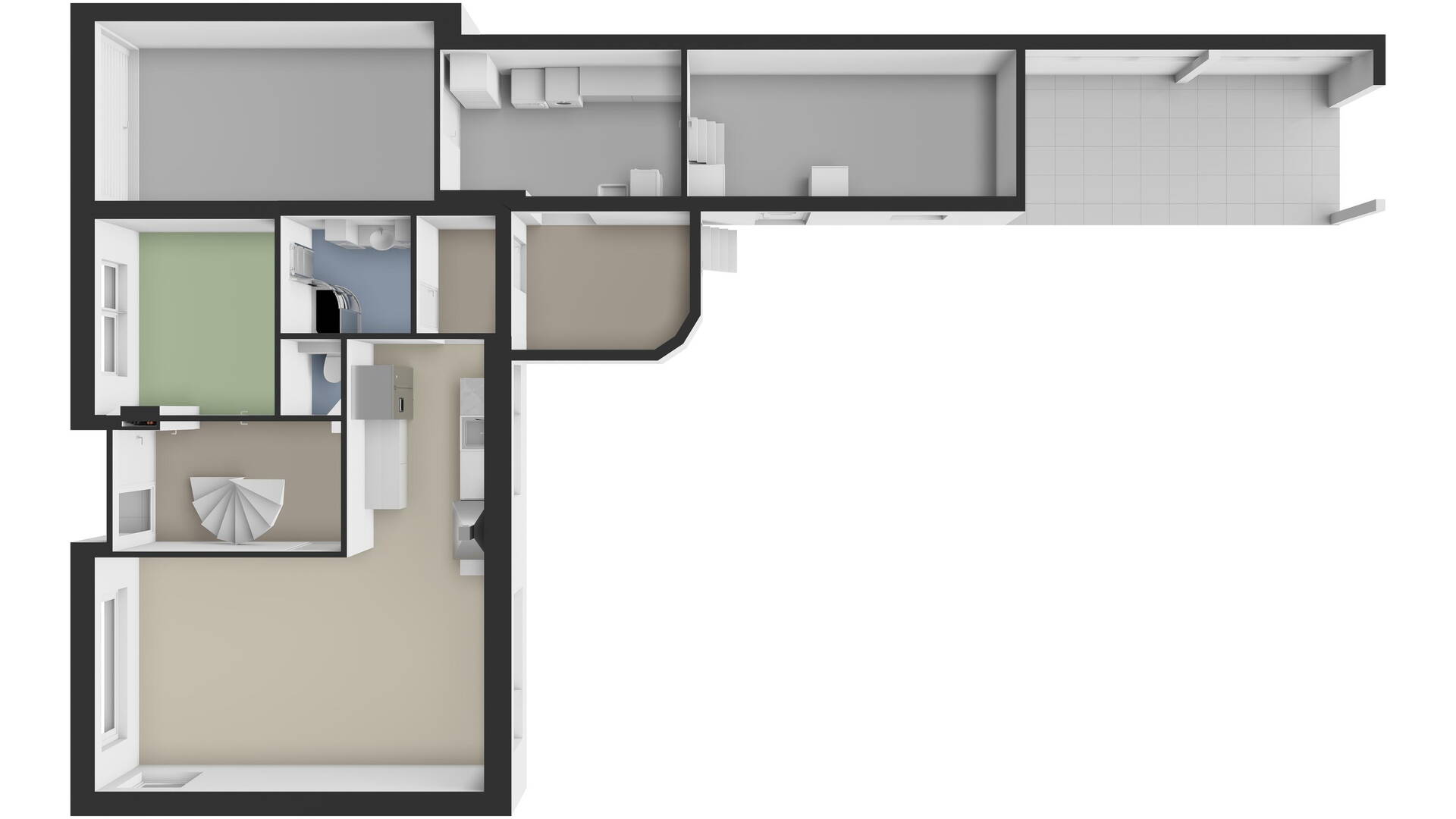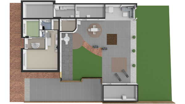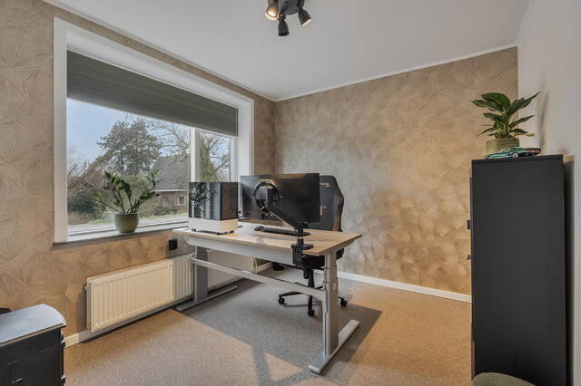 - Op de begane grond bevinden zich een werk-/slaapkamer en badkamer, waardoor gelijkvloers wonen hier moeiteloos mogelijk is;