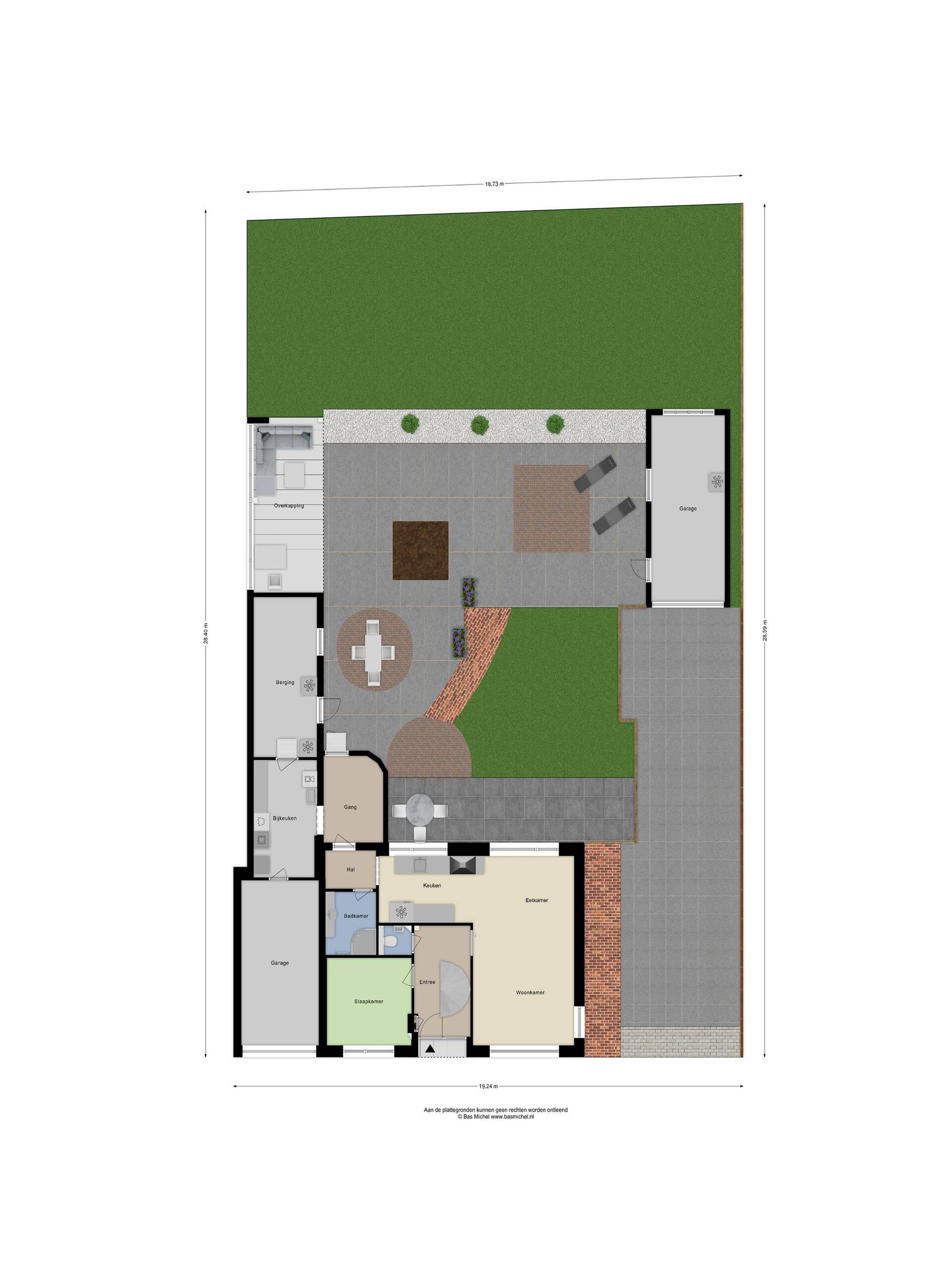 De achtertuin is onderhoudsvriendelijk aangelegd en biedt veel privacy. Met meerdere terrassen en een gezellige overkapping is dit een prettige plek om buiten te verblijven. Er is ook voldoende grond om een eigen moestuin aan te leggen, waar je groenten, kruiden en andere planten kunt laten groeien. Aan de rechterkant op het perceel staat een grote vrijstaande garage. De achtertuin biedt nog een gezellige overkapping (ca. 15 m2).