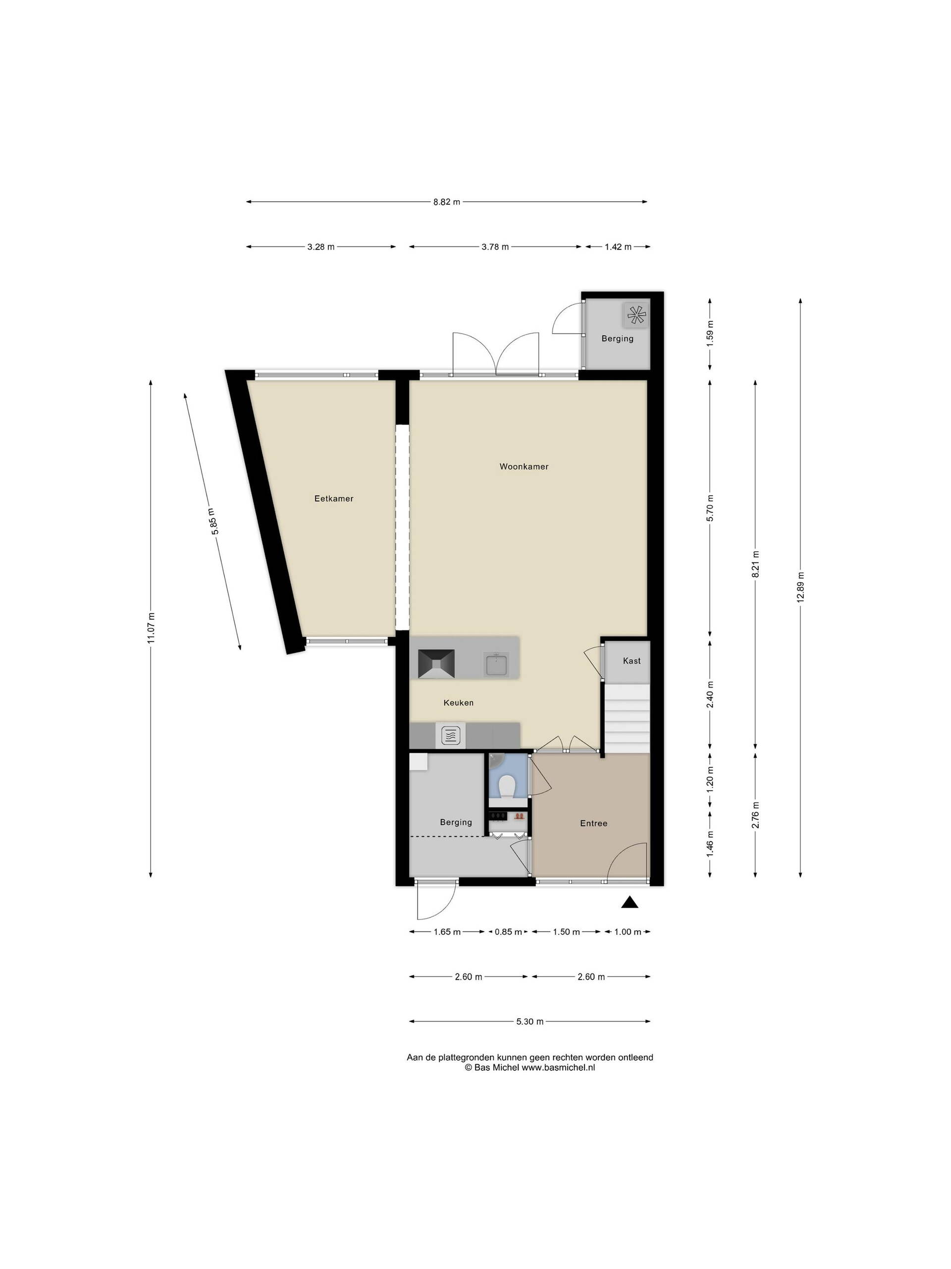 De berging, ideaal voor extra opslag, is zowel vanuit de hal als vanaf de straatzijde bereikbaar en beschikt over een praktische vliering en de afgesloten kast met de meterkast.